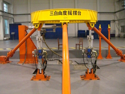项目特点:具有纵摇、横摇二自由度。可分别进行单自由度或双自由度组合摇摆。 摇摆台被试件承载液体,根据流体动力学进行具体设计分析。是当时国内大负载的摇摆台。